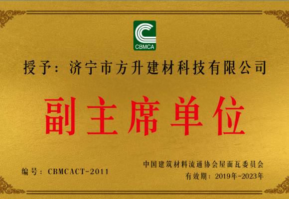 2019年7月公司被中國.建筑材料流通協(xié)會屋面瓦第二次委員會授予副主席單位,公司總經(jīng)理常明皎被聘為中國建筑材料流通協(xié)會屋面瓦委員會副主席。